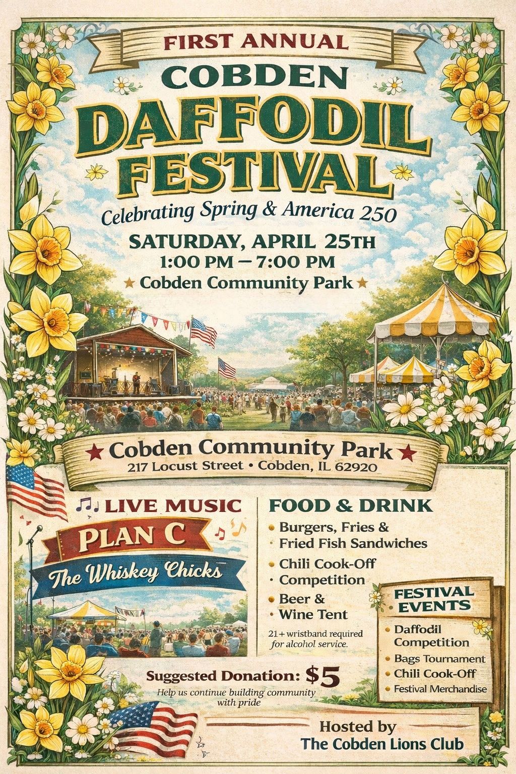 2026 Daffodil Fest Published March 18, 2026 - size: 1024 × 1536 in Village of Cobden ← Previous Next →