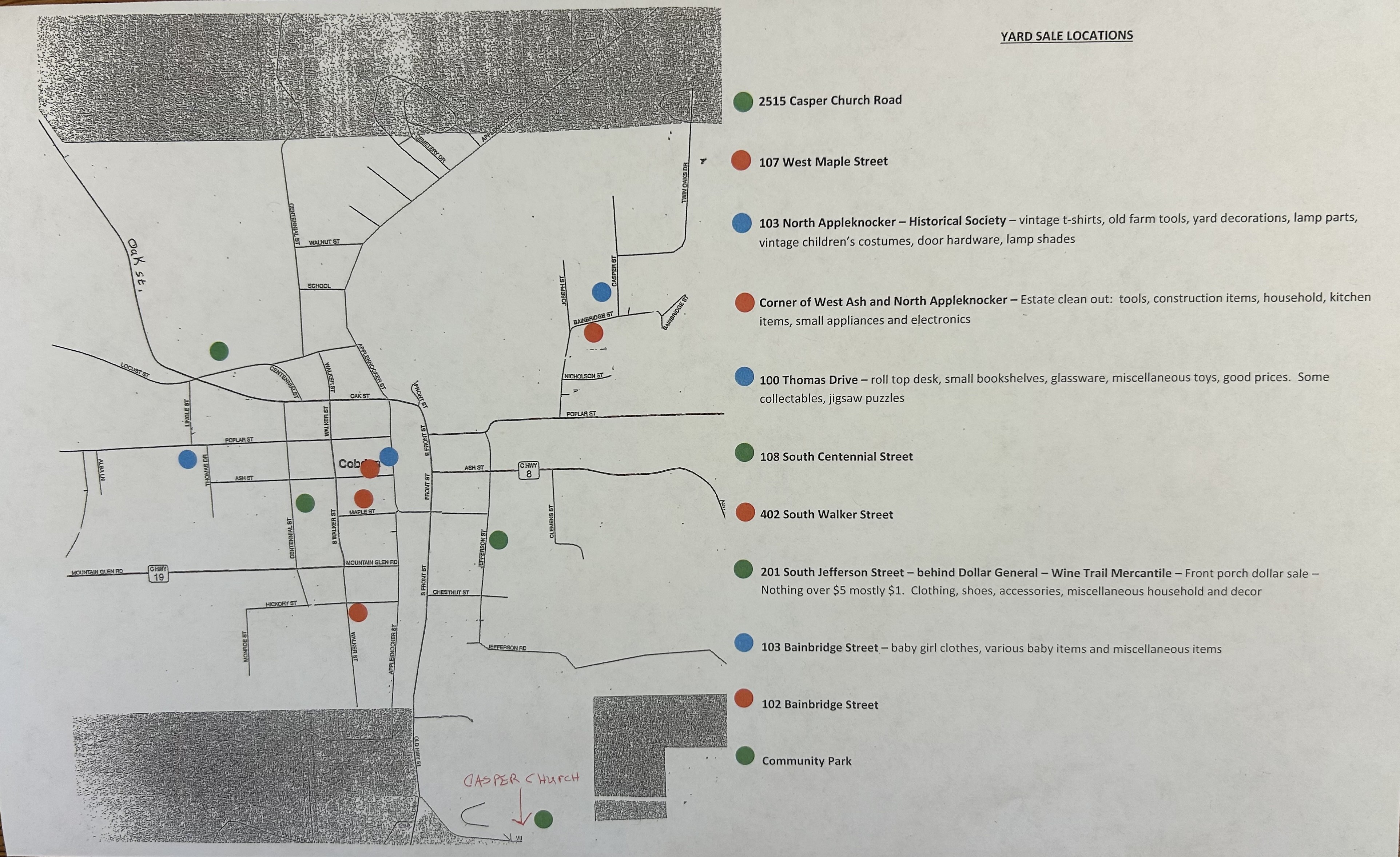 Yard sale Map 09-20-25 Published September 19, 2025 - size: 3848 × 2356 in Village of Cobden ← Previous Next →